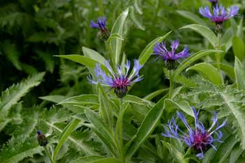 No matter what you call them--cornflowers, bachelors buttons, basket flower, or the old-fashioned blue-bottle--members of the genus Centaurea are wonderful additions to a garden. Even if they werent great cut flowers, which they are, the blue color of the species would make them desirable. They have been grown in American gardens since Colonial times, primarily from seeds brought over from Europe. History Most centaureas originated in Europe, where they still inhabit fields and waysides today, but a few are native to the Americas. They have been part of gardens for centuries, going back to ancient times. In fact, the genus name, Centaurea has its basis in Greek mythology. One of the centaurs, Chiron, is said to have used the flower to heal wounds, including his own, after battle. The most peaceful of the centaurs (who were a warlike group of half man-half horse), Chiron is credited in myth with teaching mankind about the healing powers of herbs. In spite of that history, cornflowers werent as established as medicinals as other herbs, perhaps in part because of confusion with centaury (Centaurium, now known as Erythraea centaurium), which has a similar name but very different flower color. Both were thought to be beneficial for eye ailments--understandable for cornflowers because of their blue color. In the mid-1600s, herbalists such as John Gerard and Nicholas Culpepper included cornflower, or blew-bottle, in their books on useful herbs. Culpepper claimed the dried leaves could be used as a remedy against the poison of the scorpion, if they were mixed in water with plantain or comfrey. Modern herbalists dont advocate that, but they do consider a decoction of the leaves useful as an eye lotion. Whats in a Name? There are many species of centaurea, but the most readily available as seeds or plants are Centaurea cyanus, cornflower, or bachelors-button; C. americana, basket flower; and C. montana, mountain bluet, or perennial cornflower. Cornflowers are appropriately named--they grow wild in corn fields in Europe and the United States and bloom basically until the harvest season begins. The term bachelors-button refers to the long-lasting quality of the flower when it is cut and placed in the buttonhole of a suit or shirt; decades ago, bachelors sported the flower when they went courting. The origin of bluet in mountain bluet is from France. The blooms of basket-flower give it its name: Because of the ray-like outer petals, the heads look as if they are set in a shallow basket. Annual bachelors-buttons and basket-flowers begin to bloom in late spring and continue through summer. C. americana, an annual native to the south central and southeastern United States, is hardy to Zone 4. Centaurea can tolerate low temperatures of 41 degrees Fahrenheit. Native to the mountains of Europe, mountain bluet flowers from late spring to early summer. It is hardy to Zone 3 and produces fringed, violet-blue flowers with deep purple centers. Also a member of the Centaurea genus is the well-known bedding plant dusty miller. A perennial, C. cineraria is grown for its grayish foliage, not its rather unattractive purple flowers. Even though it is perennial to Zone 4, its best to treat it as an annual; it doesnt come through winter looking very good. Some species, which you wont find for sale, are unwelcome in gardens and fields because they are noxious weeds. Known variously as knapweed and hurt sickle, they were introduced from Europe, and they crowd out more desirable native plants. Hurt sickle refers to the ability of the tough stems of the plants to dull, and sometimes break, a farmers sickle back in the days of hand-reaping. Knapweed comes from the rounded, knobby flowerknap is an older English form of knob. They are not plants for a gardenor anywhere else, for that matter. Flower and Plant Forms Centaureas produce single and double, fringed blooms on plants that range in height from 10 inches to 2-1/2 feet, depending on the species or cultivar--basket flower can reach 4 feet in height. The shape of the flower petals resembles that of thistles, but the plants leaves do not have the spines of the latter! The leaves are often an attractive gray-green. Mountain bluet grows about two feet tall with an equal spread. The flowers are usually lavender blue, but you may also find plants with rose, pale yellow, or white blooms. Tall and double-flowered forms are particularly valuable in a cutting garden. Dwarf forms of centaurea, especially the Florence series and the Midget mixture, with their 10- to 20-inch height and naturally compact, bushy growth habits, are good choices for edging a garden or filling out a container. Colors include violet, red, pink, lavender, blue, and white. Growing from Seed Centaureas are very easy to grow from seed started indoors or out. The taller varieties, which are so useful in cutting gardens, may not be readily available as plants at garden centers and should be started from seed. Perennial mountain bluet simply takes a little longer to germinate than the annual kinds; started early enough, it may bloom the first year it is planted. Sowing Outdoors According to the National Garden Bureau, you can sow annual centaureas outdoors in late September in mild winter areas; they will start to grow before the first fall frost (if any) and will bloom earlier the following spring. In colder zones, sow seeds in early spring as soon as the ground can be worked. Sow perennials in early spring or fall.