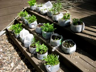 Winter sowing is a great way for new gardeners on a budget to fill a whole garden with perennials for only the price of a few packs of seeds. My gardens are already chock-full of perennials so I am using winter sowing to start my hardy annuals and biennials. Hardy annuals are the annual and tender perennial self-seeders that pop up every year in your gardens and will take a light frost in the early spring or fall. Why do I want to start hardy annuals that are going to appear on their own anyway? First, because re-seeders usually take a while to get going and I don't like looking at big holes in my gardens. Second, while I am waiting for the self-seeders to show up the weeds and other neighboring plants try to take over their place in the garden. By winter sowing in containers outside, I can plant good-sized plants right into the garden in late May and they are already hardened off and ready to start going strong in the garden. How to Get